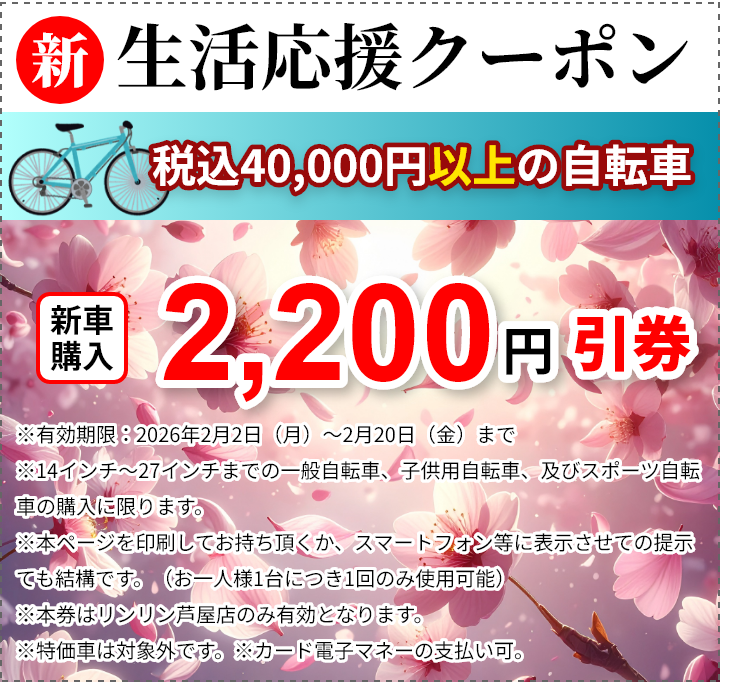 新しいスタートを切る方を応援する「新生活応援クーポン」を配布中です。