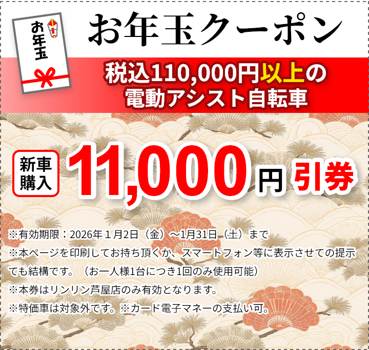 お正月限定の自転車の購入時に使える、お年玉クーポンです!
