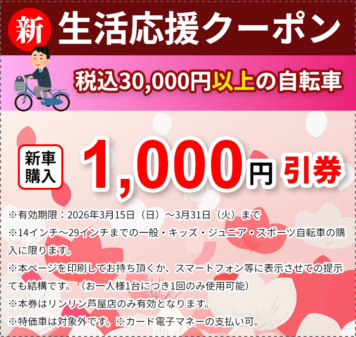 新しいスタートを切る方を応援する「新生活応援クーポン」を配布中です。
