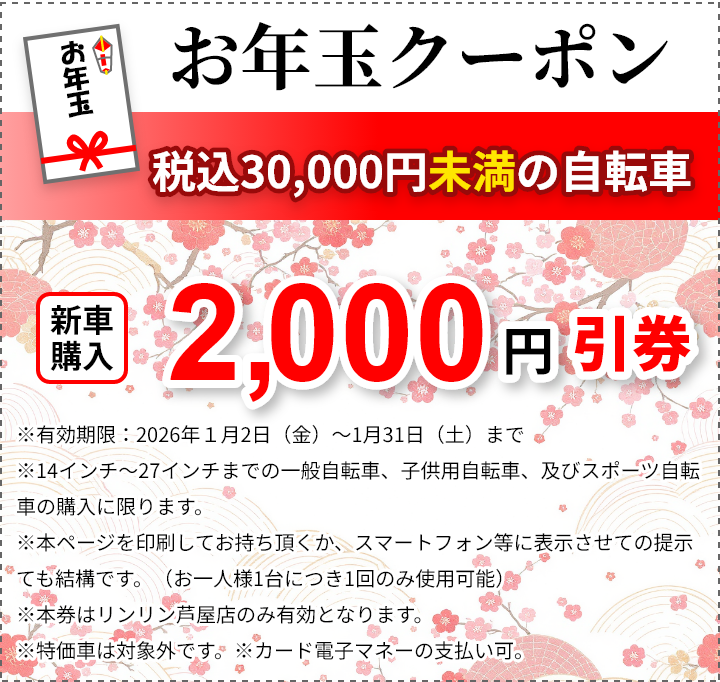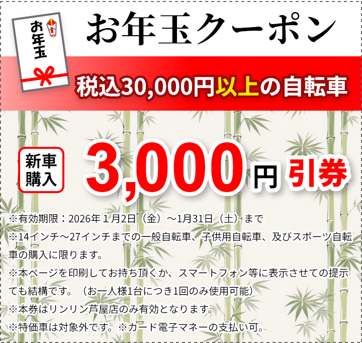 お正月限定の自転車の購入時に使える、お年玉クーポンです!